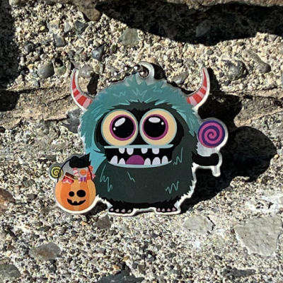 Monsteret Tuffy ser for sød ud til at blive skræmmende, men er klar til at søge efter slik i hele geocaching-verdenen, én geocache ad gangen!