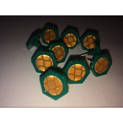10 stk. Reflekser "HOTDOTS" STELTH -grøn som kortknappenål LEVERES i 1 PETling