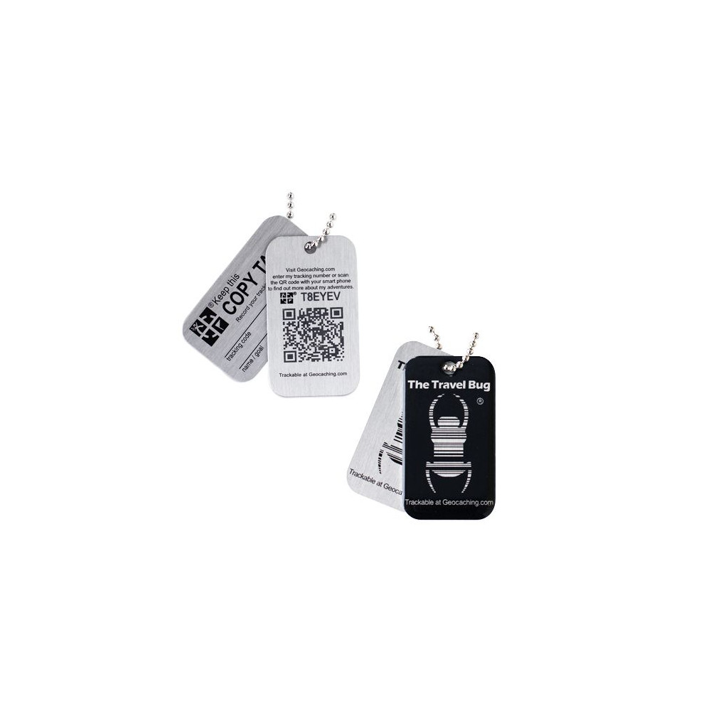 Each Geocaching Travel Bug® comes as a pair; one bug gets attached to an item (or on its own) and the other is a copy that you can hold on to. Geocaching Travel Bugs® have a unique tracking number stamped into the metal tag. The tag was designed for durability.